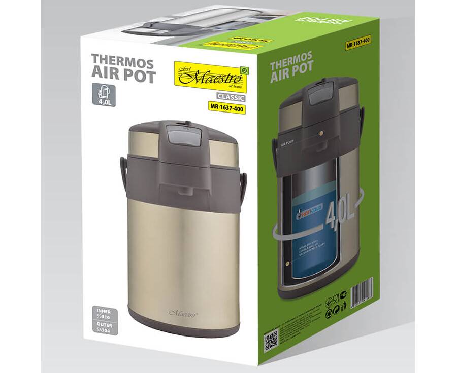 Термос 4 л с помпой Maestro золотой (MR1637-400 з)