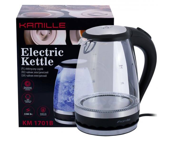 Чайник 1,5л електричний з синім LED підсвічуванням Kamille (1701B)