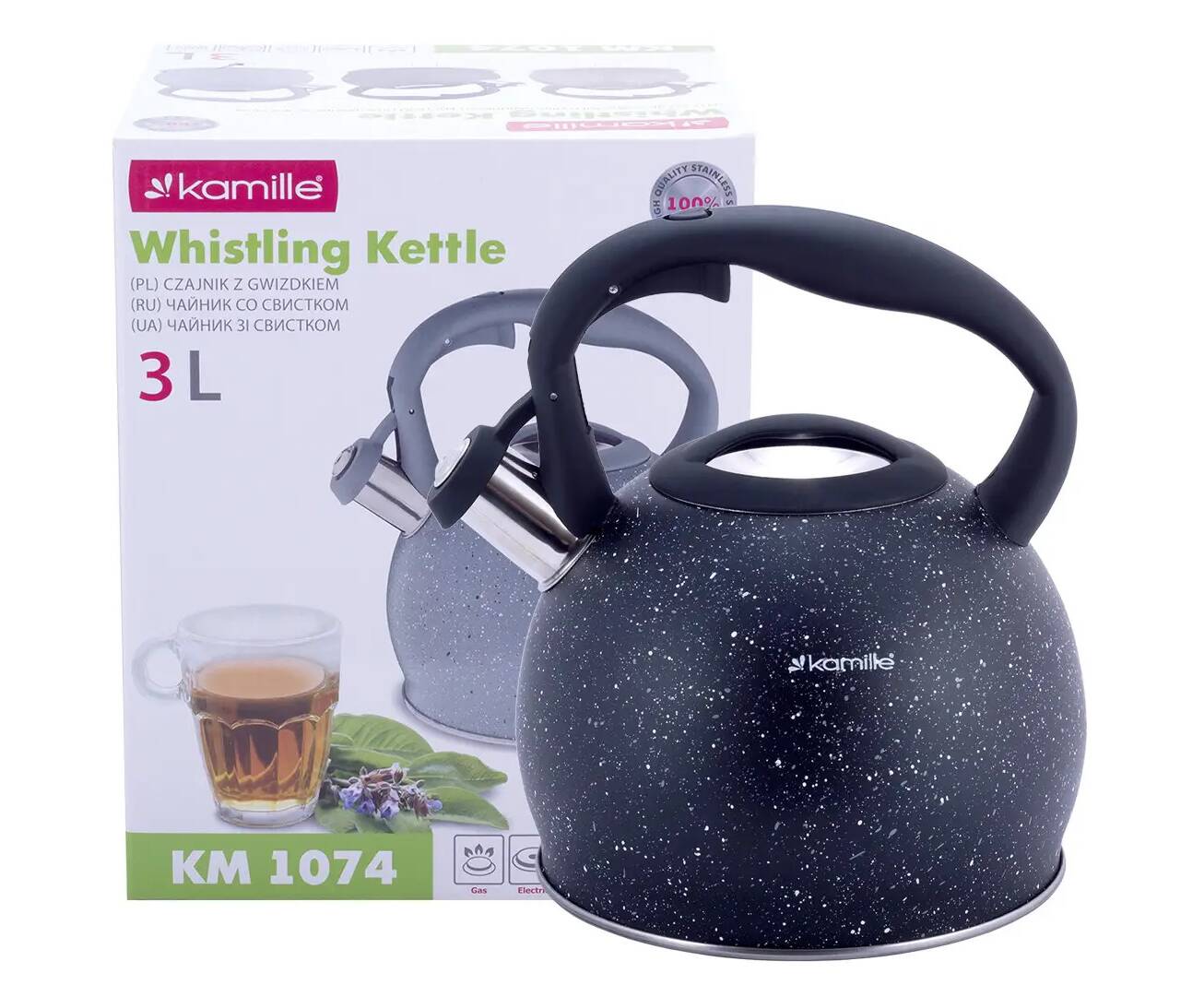 Чайник 3л зі свистком та ручкою soft touch Kamille (1074BL)