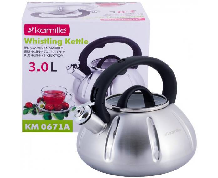 Чайник 3л зі свистком та скляною кришкою Kamille (0671A)