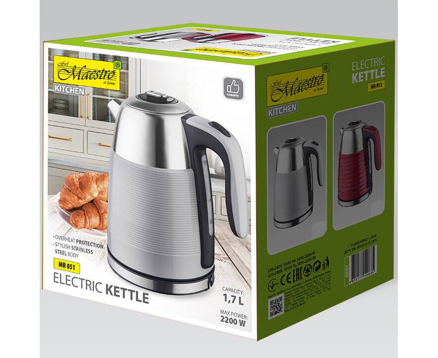 Чайник електричний металевий 1,7л Maestro (MR051-RED)