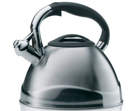 Прогумована ручка надійно фіксується в руці, що підвищує безпеку використання чайника