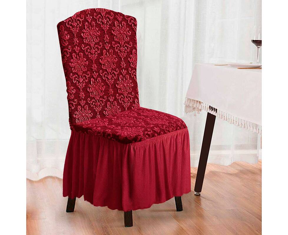 Жакардові чохли зі спідницею на стільці – це незвичайний та стильний спосіб прикрасити ваші стільці та надати їм елегантного вигляду, а також можливості приховати існуючі вади старих стільців, що втратили свій зовнішній вигляд.