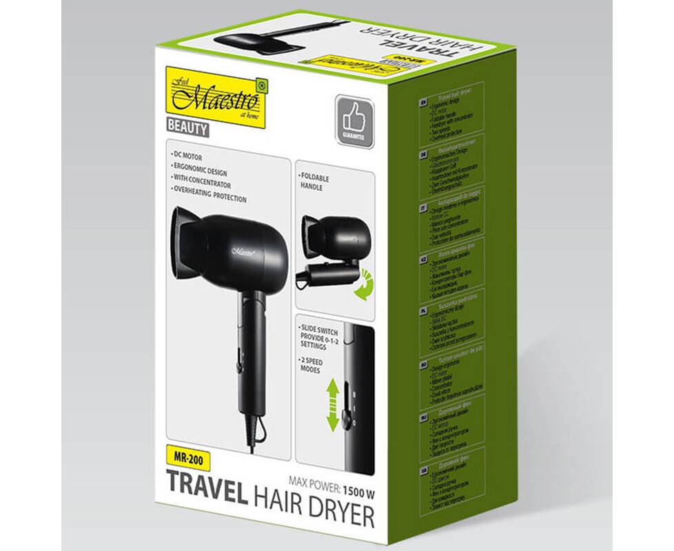 Фен дорожній Maestro 1500 Вт DC двигун (MR200)