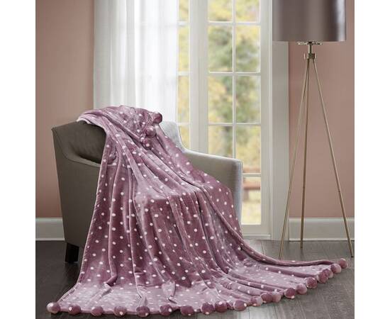 М'який та приємний плюшевий плед з помпонами та малюнком у вигляді кульок. Такий плед огорне Вас теплом в холодну пору року і буде гарною прикрасою будь-якого інтер'єру.