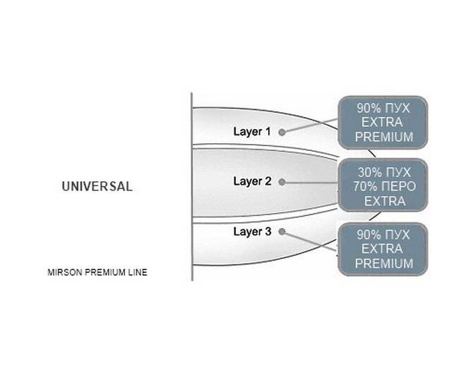 трикамерна (90% пух/30% пух/90% пух)