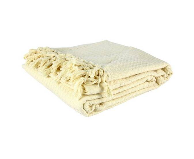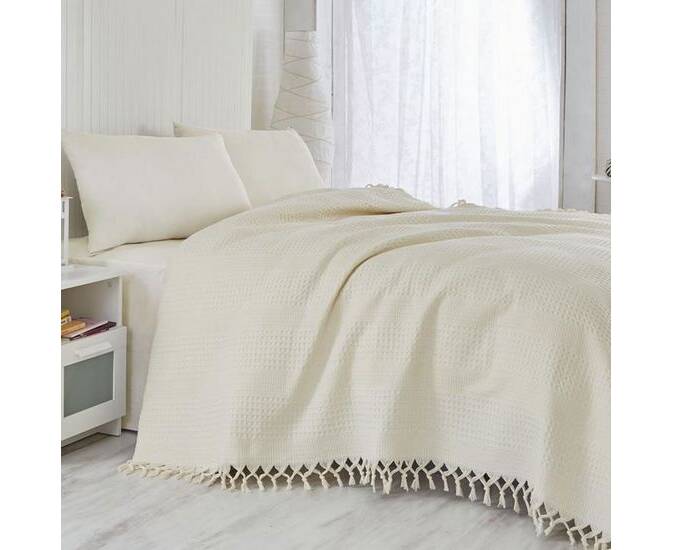 Ніжне натуральне покривало. Прикрасить ліжко та зігріє вас прохолодним вечором. Легко переносить прання та не втрачає своїх властивостей з часом. Можна прати та сушити в пральній машині при температурі 30-40 градусів. Не застосовувати відбілювачі та засоби хімічного чищення. Прасувати при низькій температурі до 110 градусів.