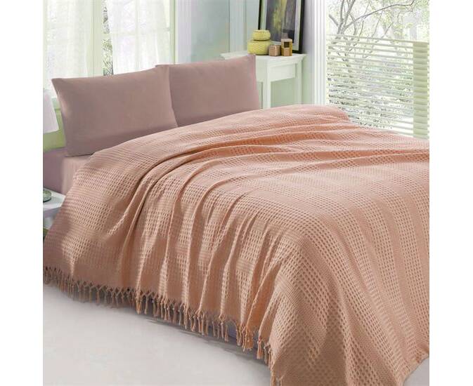 Ніжне натуральне покривало. Прикрасить ліжко та зігріє вас прохолодним вечором. Легко переносить прання та не втрачає своїх властивостей з часом. Можна прати та сушити в пральній машині при температурі 30-40 градусів. Не застосовувати відбілювачі та засоби хімічного чищення. Прасувати при низькій температурі до 110 градусів.