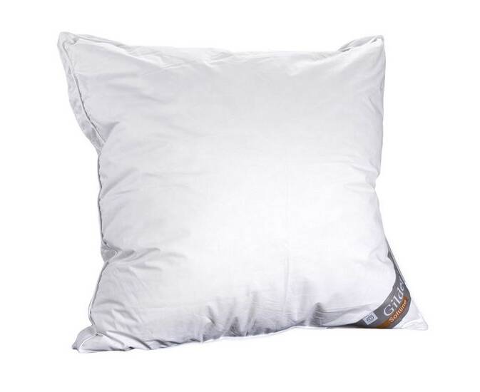 Подушка GILDER дуже м'яка та повітряна. Подушка – трикамерна, у зовнішніх камерах – чистий пух, що робить подушку дуже м'якою, у внутрішній – поліефірні кульки для того, щоб подушка краще тримала форму і відповідно довше служила.