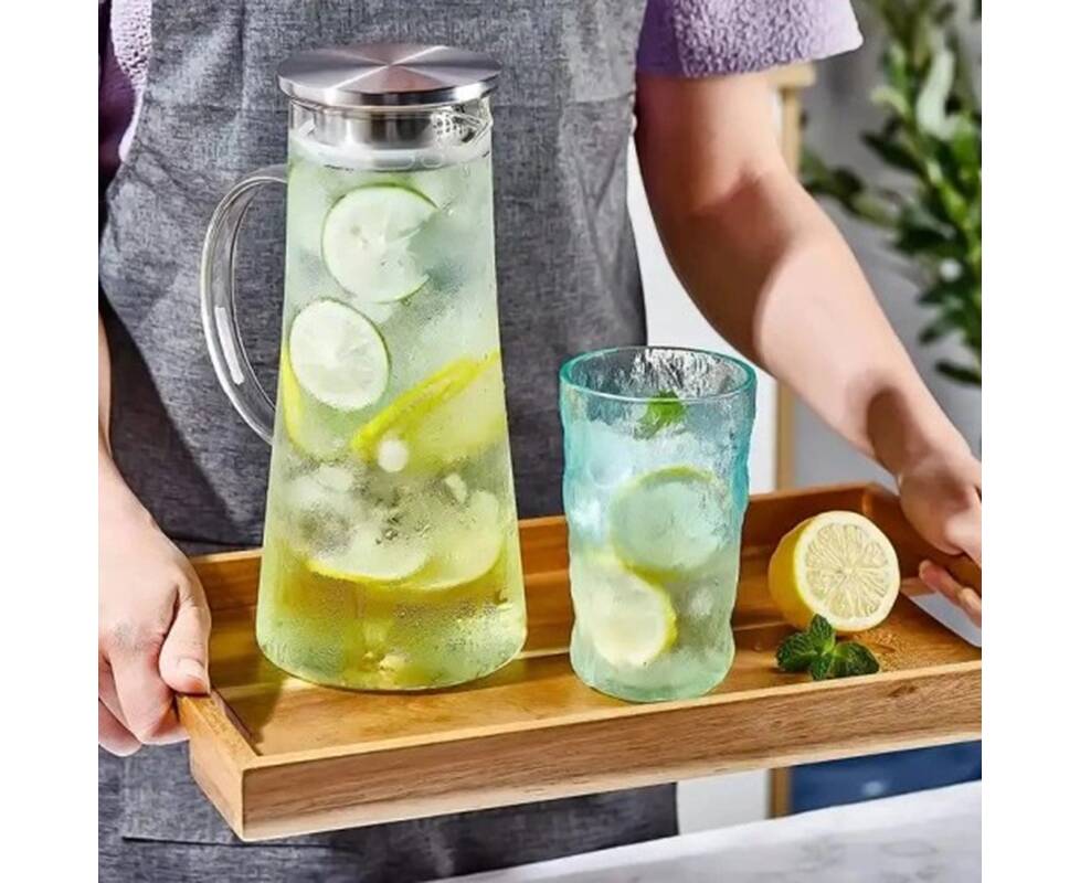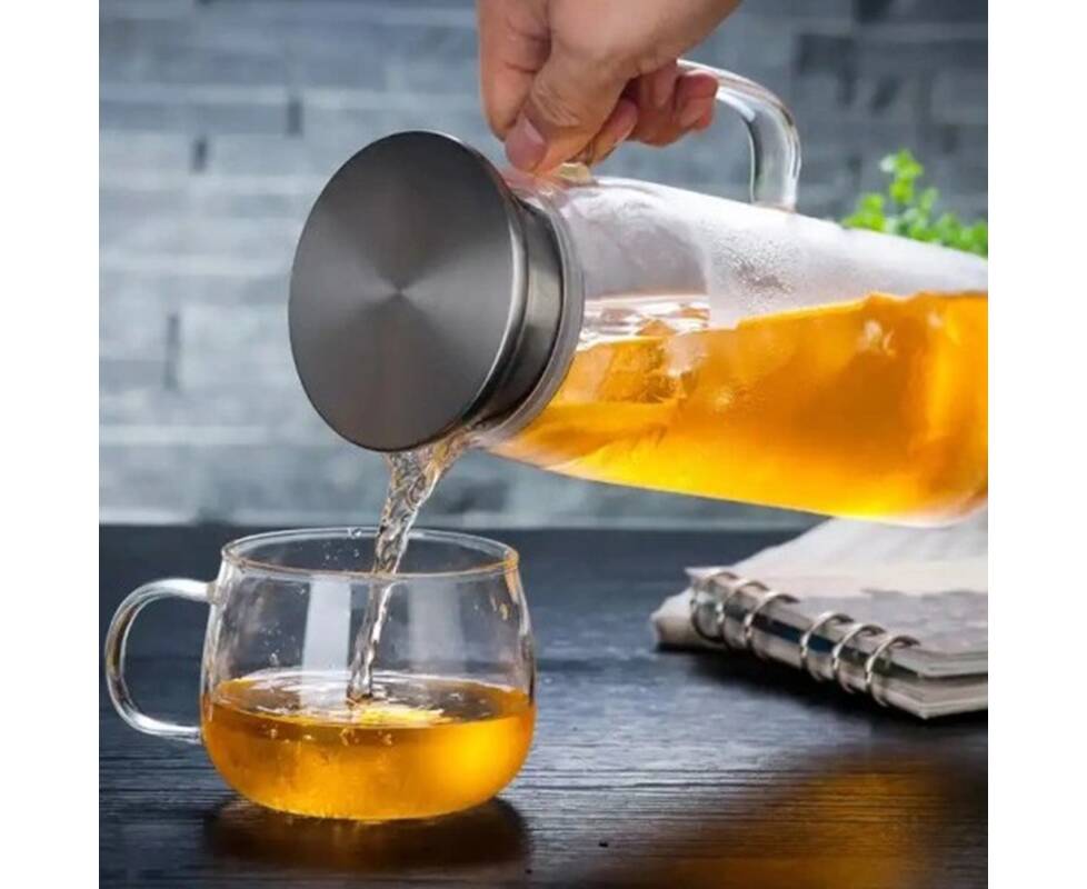 Графін скляний зі сталевою пробкою та ручкою 1,2 л Kamille (9033)