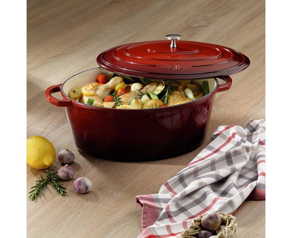 Гусятниця чавунна з кришкою KELA Calido 36х29х15 см, 9,3 л (11943) червона
