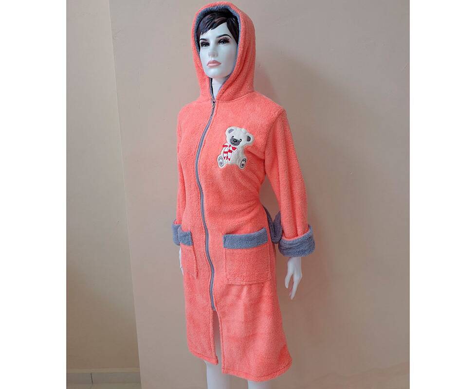 Халат махровий жіночий довгий з капюшоном на блискавці Welsoft персиковий M Zeron (19333)