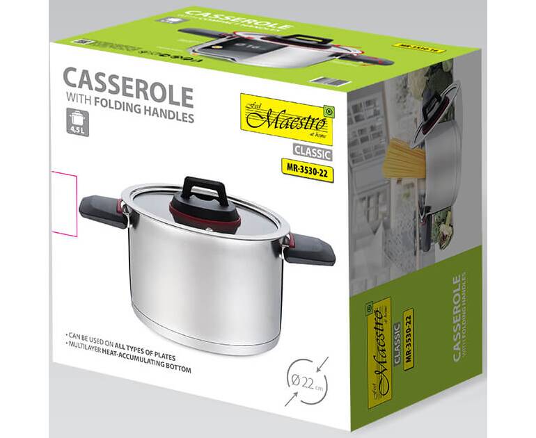 Каструля 22 см 4,2 л зі складними ручками Maestro (MR3530-22)