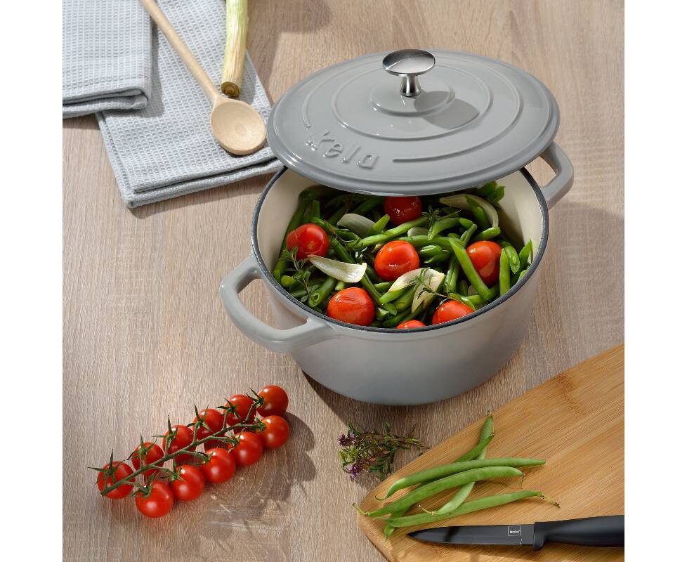 Каструля чавунна з кришкою KELA Calido 21 см, 2,5 л (12605) сіра