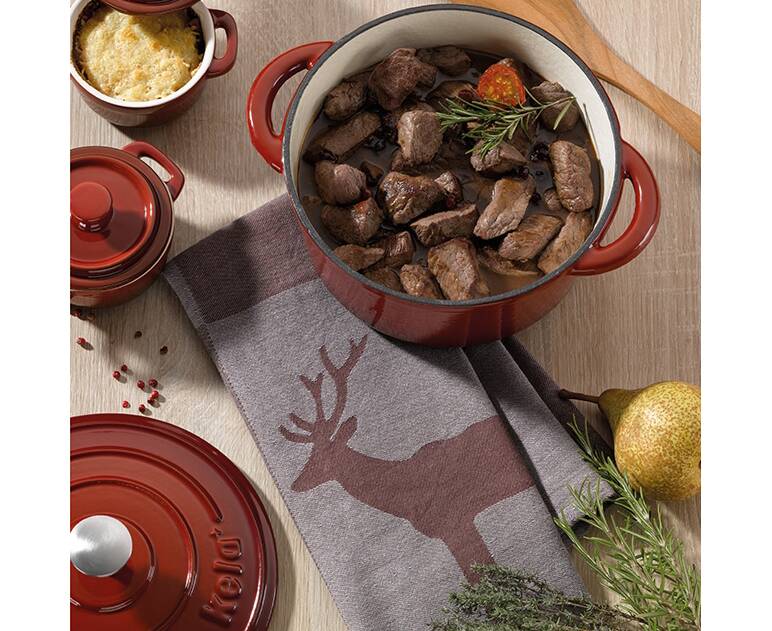 Вона ідеально підходить як для обсмажування (до 300 ° C), так і для тривалого гасіння м'яса у власному соку.