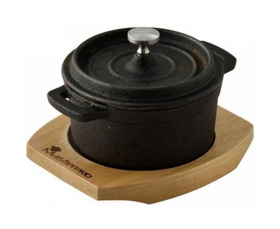 Каструля чавунна з кришкою міні з дошкою для сервіровки MasterPro Foodies cook&share, 10 см 0.16 л (BGMP-3804-4)