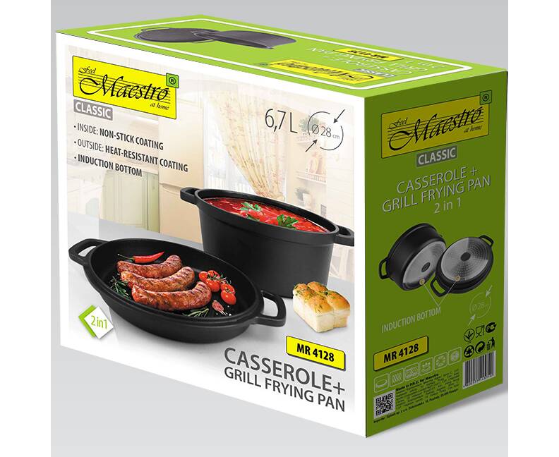Каструля Maestro з кришкою-сковородою гриль 6,7 л (MR4128)