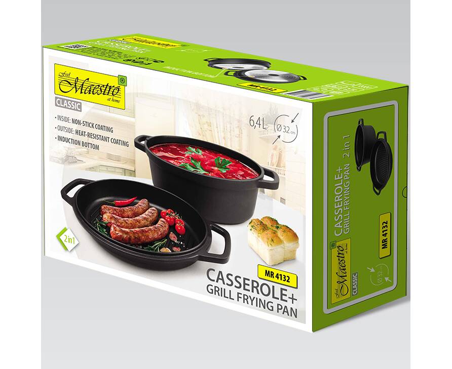 Каструля овальна Maestro з кришкою-сковородою гриль 6,4 л (MR4132)