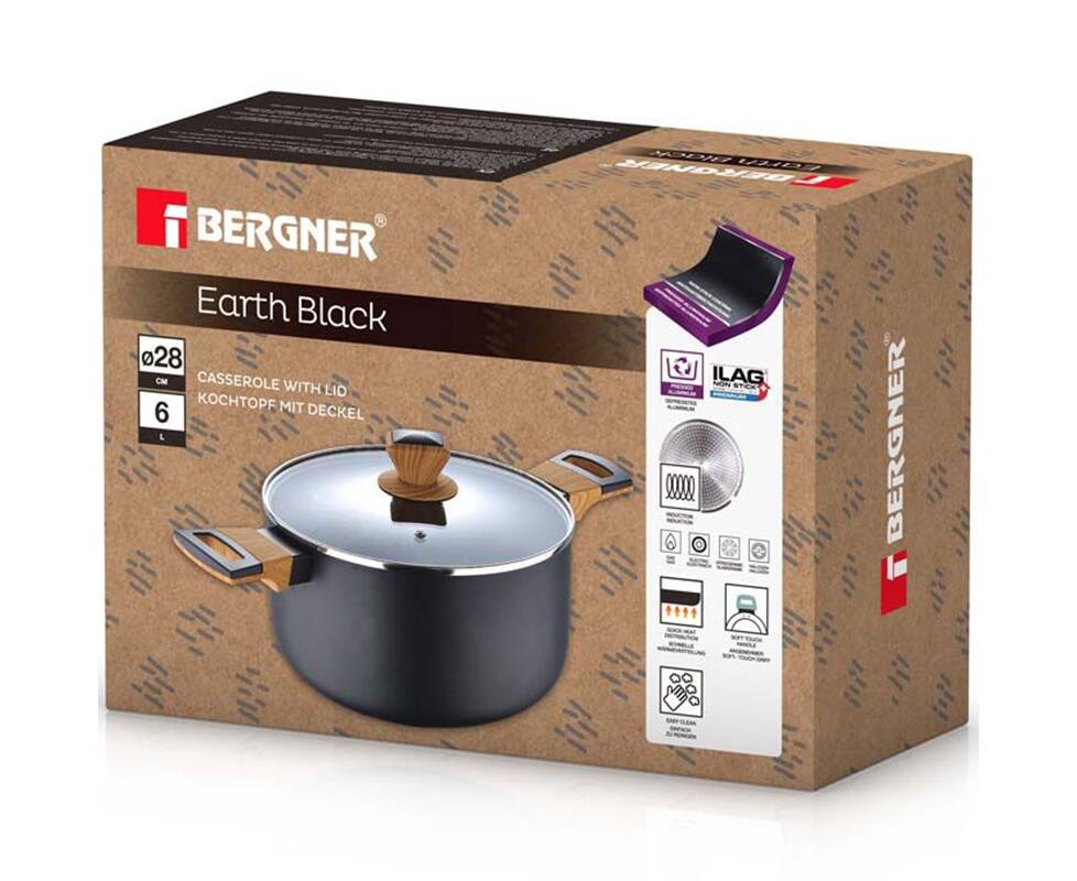 Каструля з кришкою Bergner Earth black 28 см 6 л (BG-32037-BK)