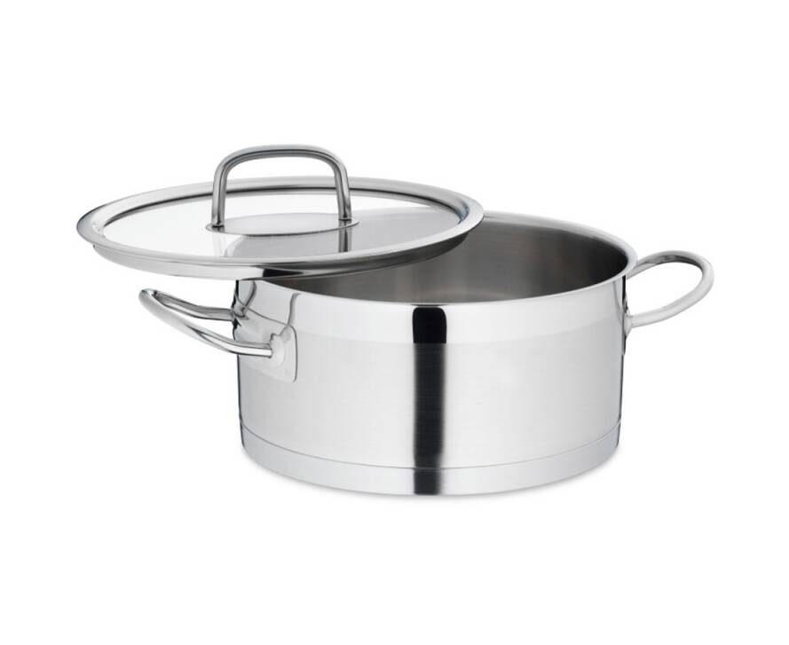 Прозора кришка зі скла з ручкою та плоским обідком з нержавіючої сталі дозволить вам спостерігати за процесом приготування.