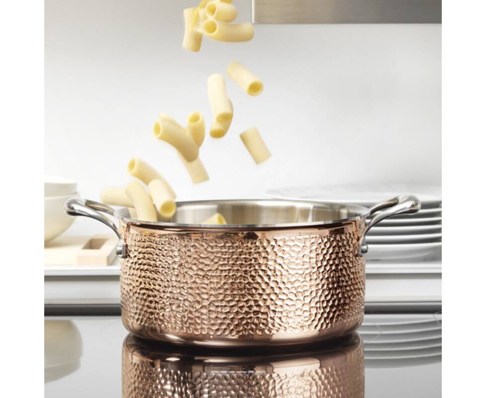 Зовнішній шар виготовлений із справжньої кованої міді, розробленої для оптимізації теплопровідності: насправді мідь проводить його до 10 разів швидше, ніж сталь.