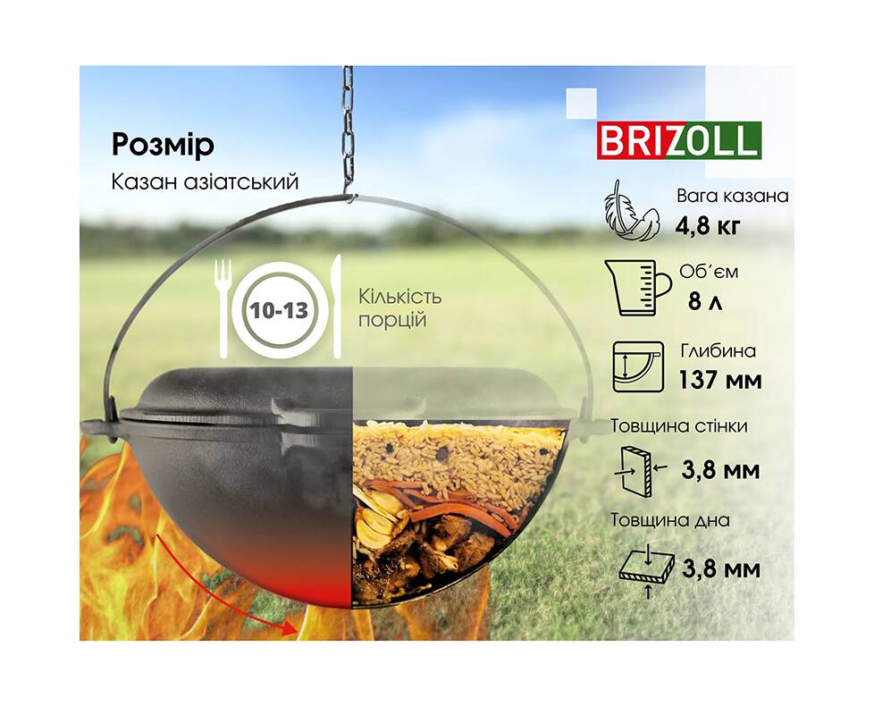 Казан азіатський чавунний із чавунною кришкою - сковородою 8 л Азія Brizoll (KA08-2)
