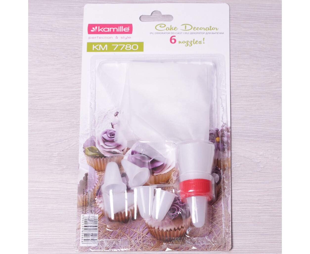 Кондитерський мішок з перехідником та 6 пластиковими насадками Kamille (7780)