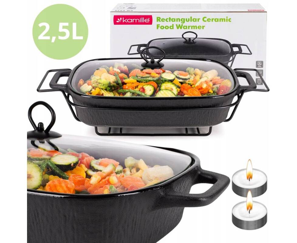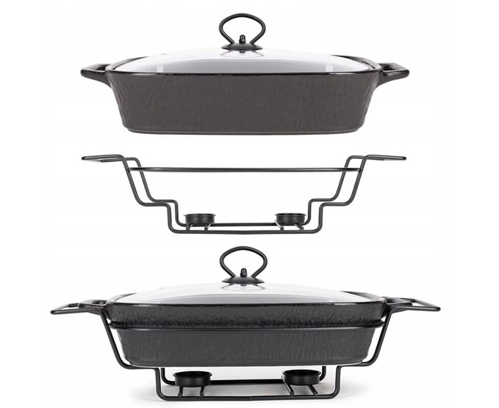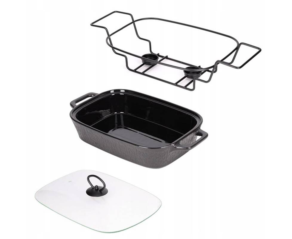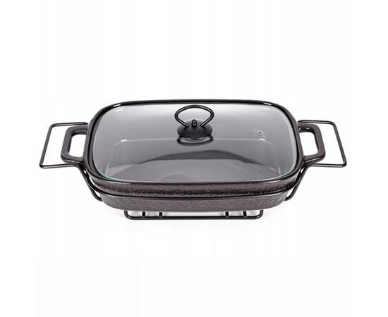 Марміт керамічний прямокутний 43x21.5x11 см 2,5 л зі скляною кришкою на металевій підставці (чорний) Kamille (6428)
