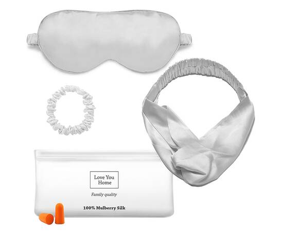 Набір для сну (маска, пов'язка, гумка, чех, беруші) сірий Love you