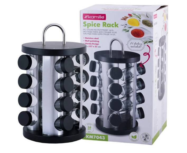 Набір ємностей для спецій на круглій підставці 16шт Kamille (7043)