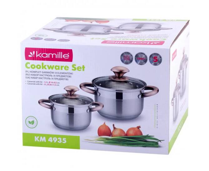 Набір каструль 4 предмети (1,5л, 3л) Kamille (4935)