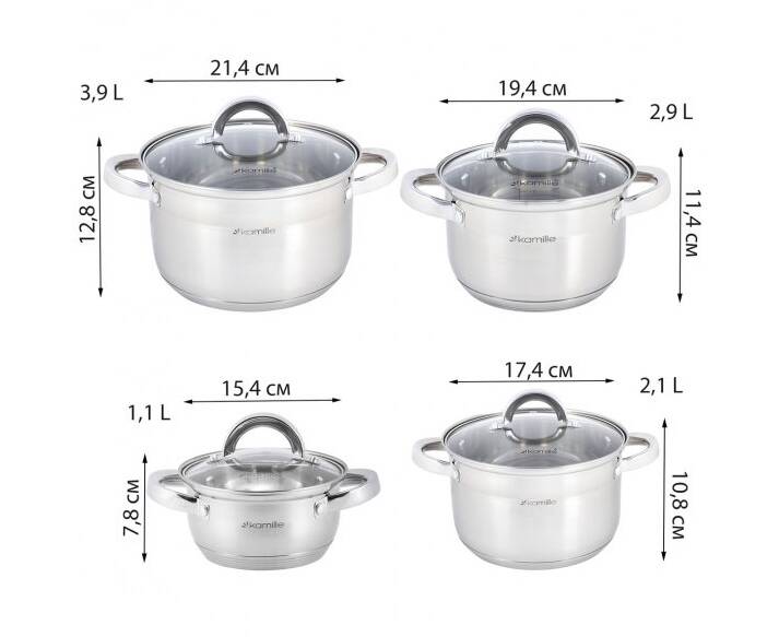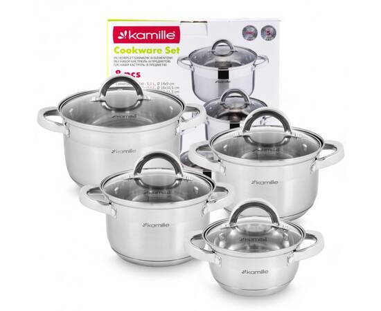 Набір каструль 8 предметів (1.0л, 1,8л, 2,5л, 3,8л) Kamille (5637S)
