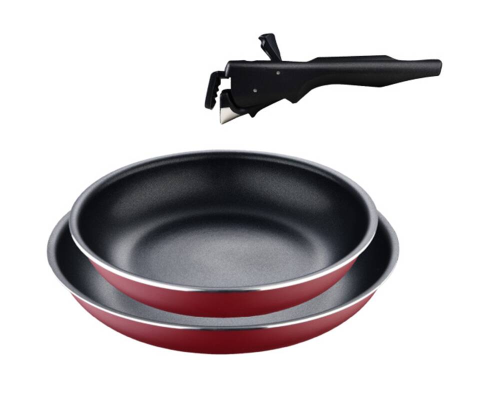 Набір сковорідок з ручкою Bergner Click & cook, 22/26 см червоний (BG-31605-RD)