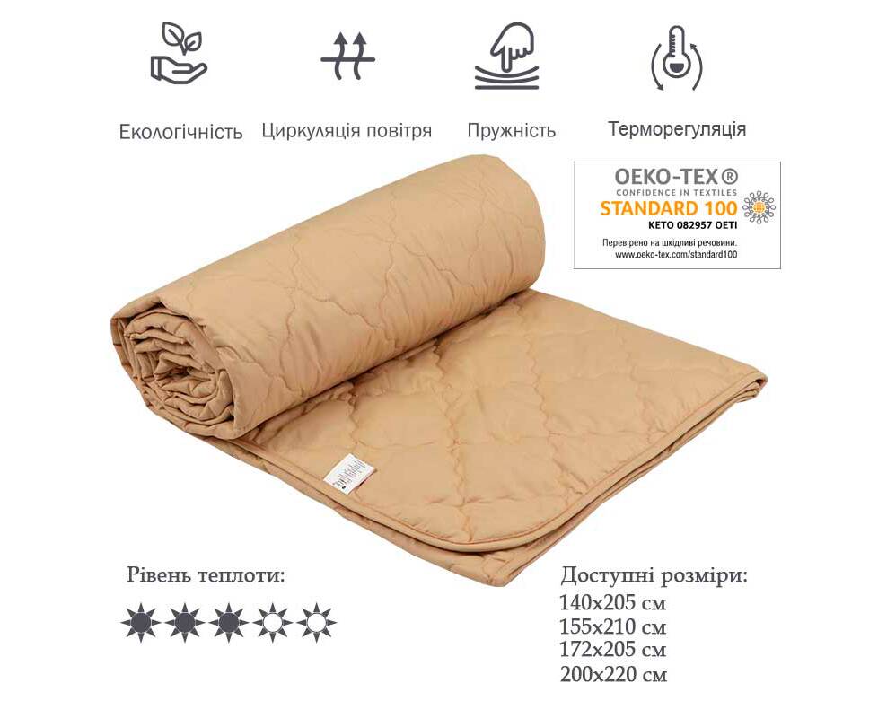 Ковдра 200х220 вовняна Комфорт бежева Руно (322.52ШКУ_Бежевий)