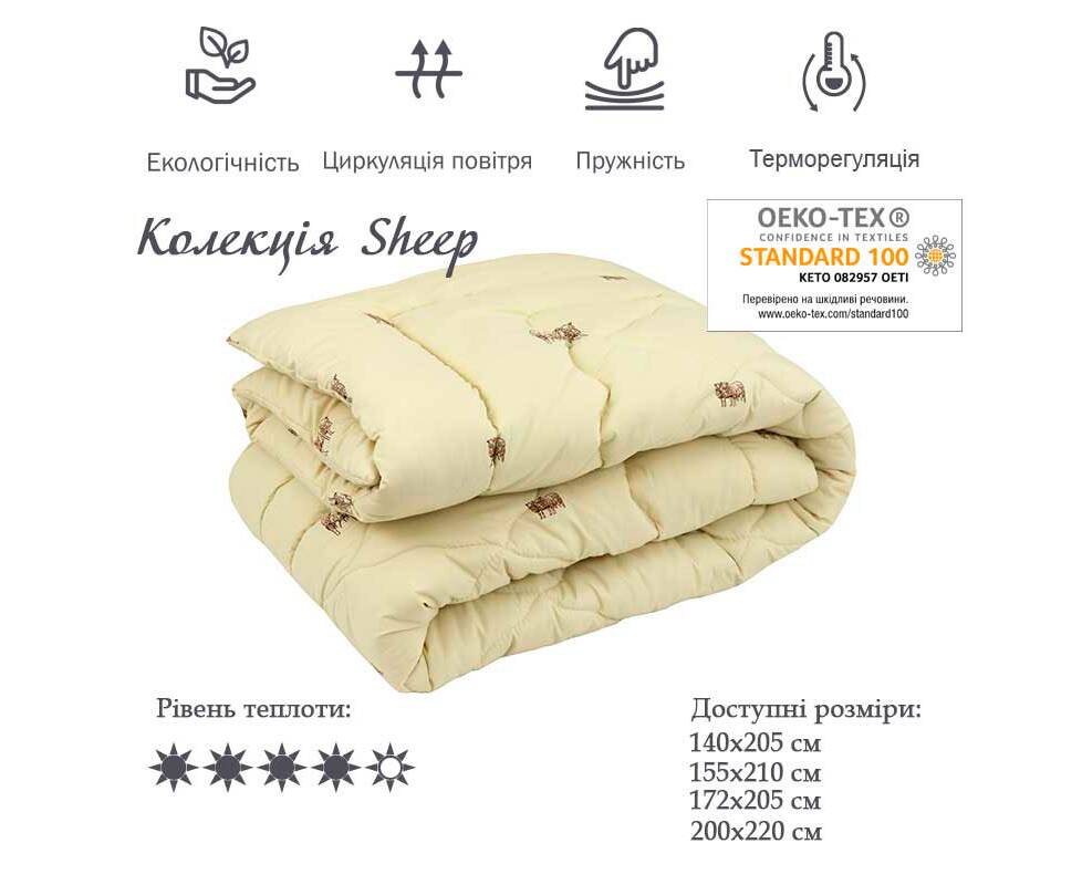 Ковдра 200х220 вовняна мікрофайбер (зима) Руно (322.52ПШК+У_Sheep)