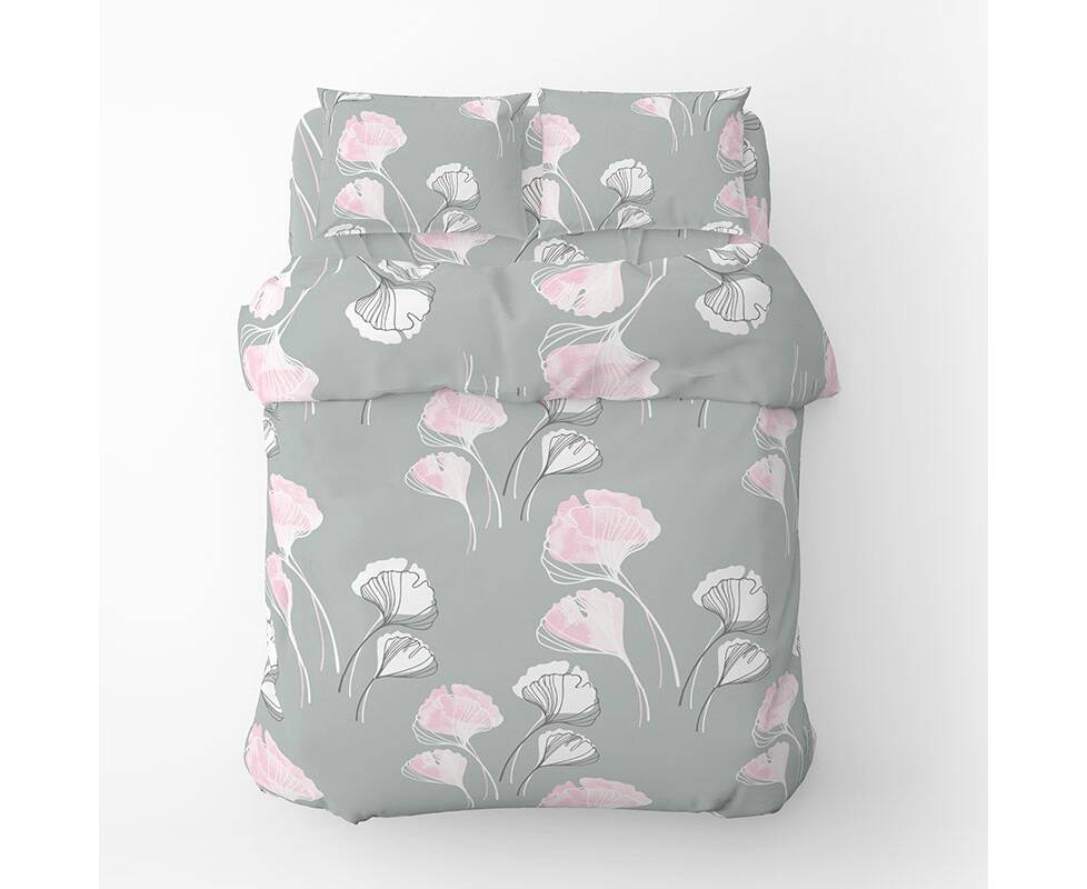 Полуторний комплект Home Line Бязь 145х214 (1 нав. 50х70) ГІНКО БІЛОБА сіро-рожевий (173538)