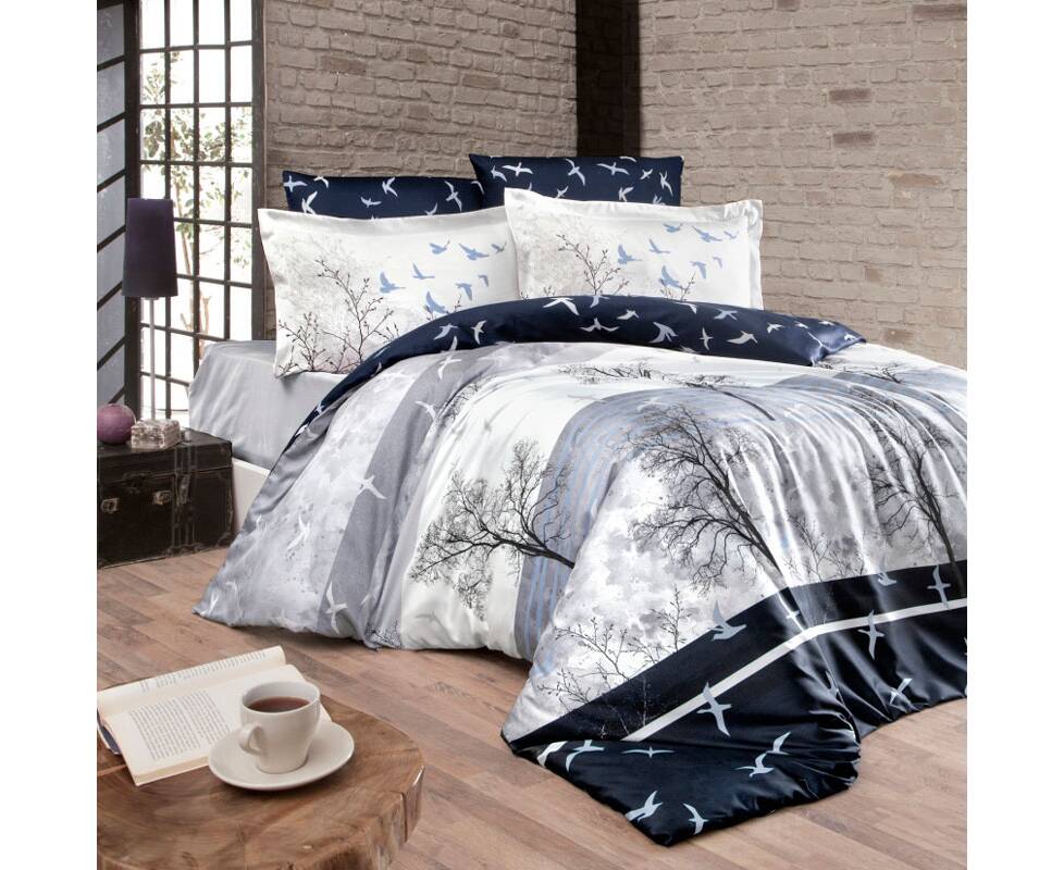 Постільна білизна First Сhoice сатин люкс 200х220 doga navy blue