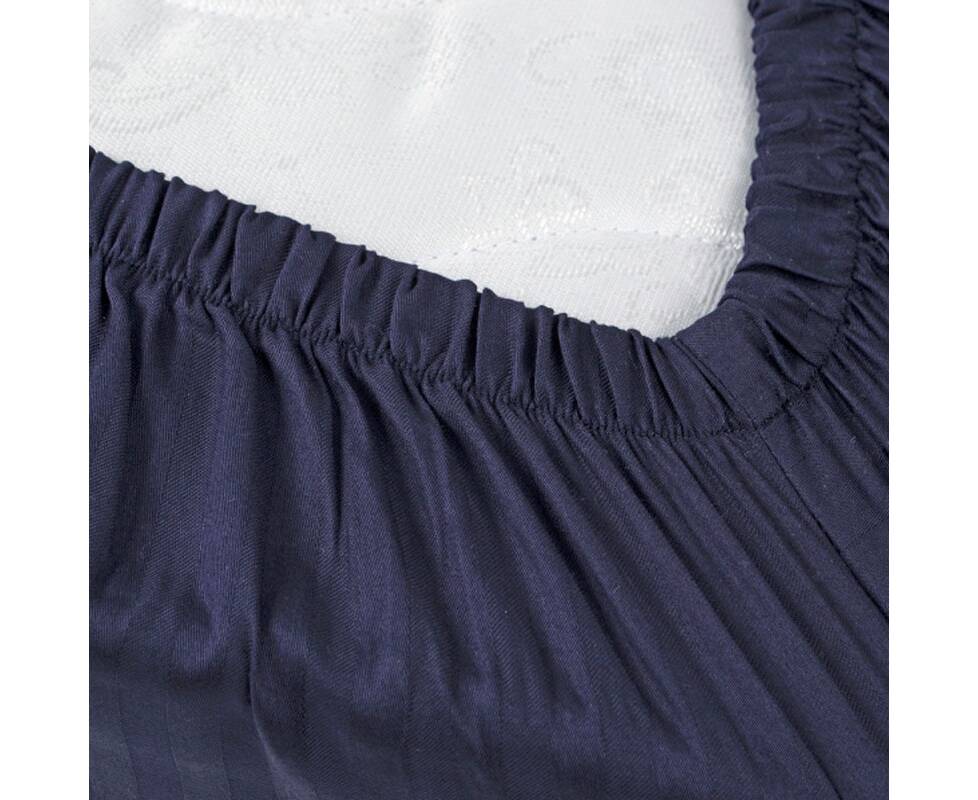 Простирадло на гумці Iris Home сатин-страйп 1x1 темно-синій 160x200x25 (svt-2000022280525)