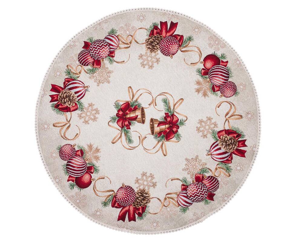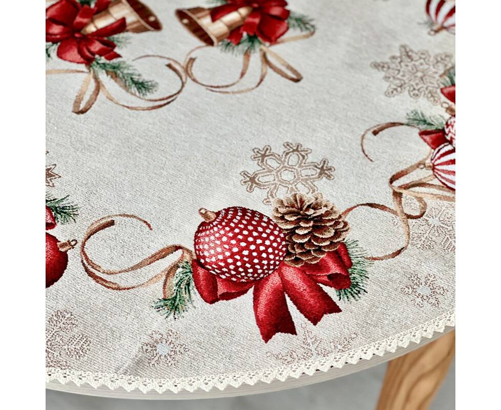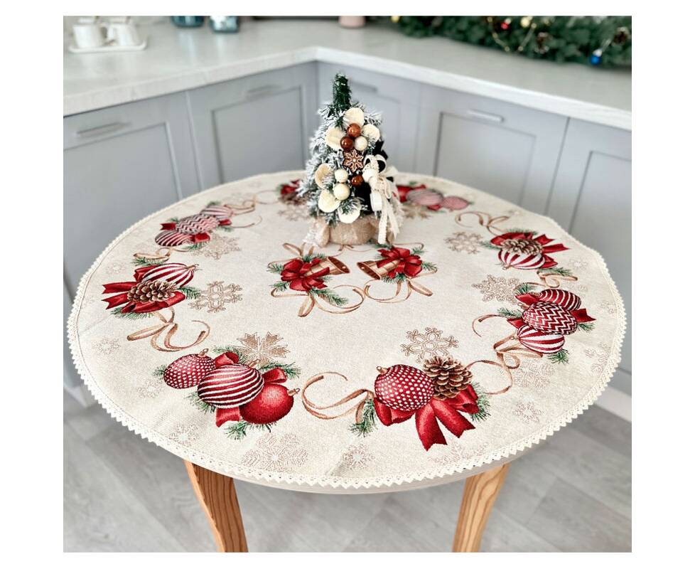 Скатертина гобеленова з мереживом O90 LiMaSo (RED BALLS-90D)