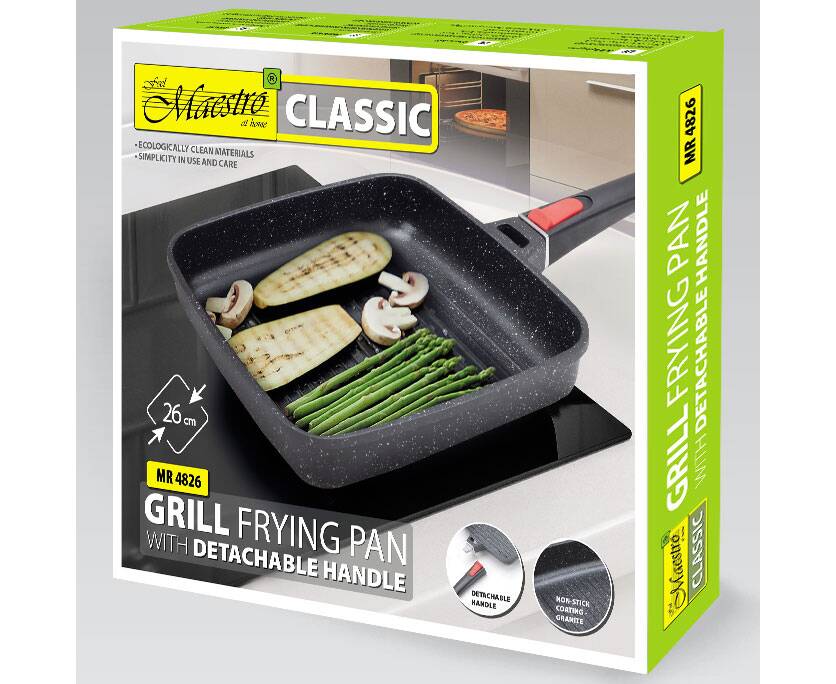 Сковорода гриль 26см Maestro антипригарним покриттям та знімною ручкою (MR4826)