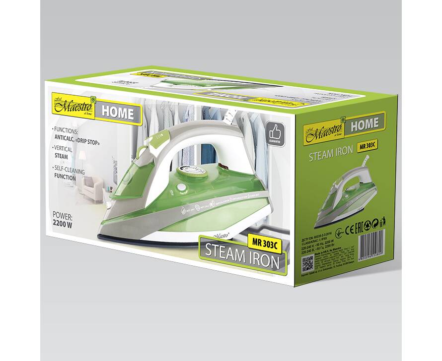 Додаткові функції: вертикальне відпарювання, «паровий удар», самоочищення, антинакип, «крапля стоп»