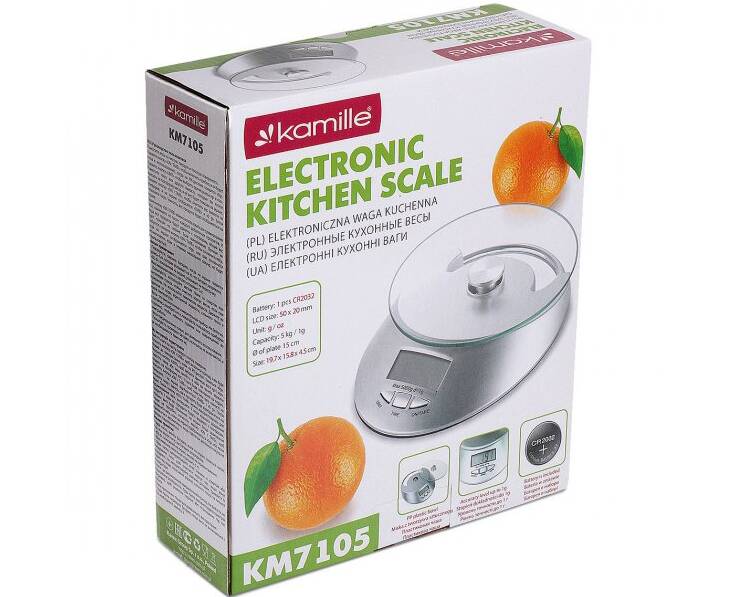 Ваги електронні кухонні 19,5x22,7x7 см Kamille (7105)