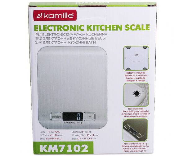Ваги електронні кухонні 19x15x2,5 см Kamille (7102)