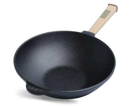 Сковорода чавунна WOK із дерев'яною ручкою 2,2 л 240х70 мм Brizoll (W24H)