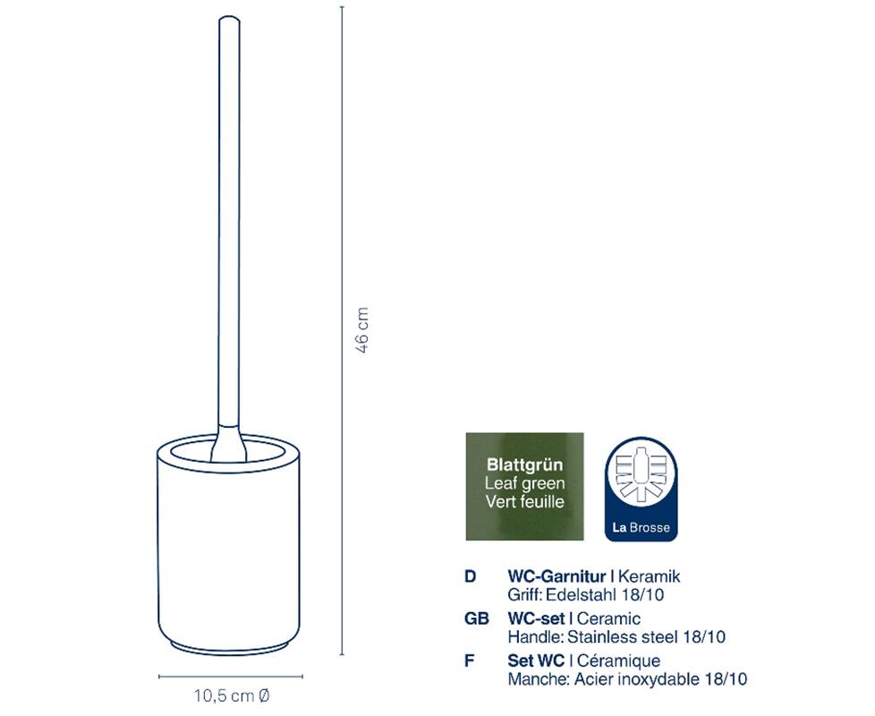 Ручка туалетної щітки виготовлена з нержавіючої сталі