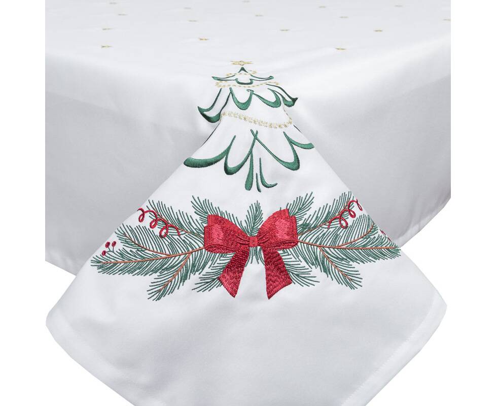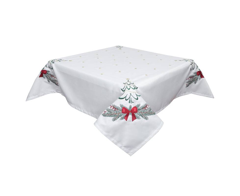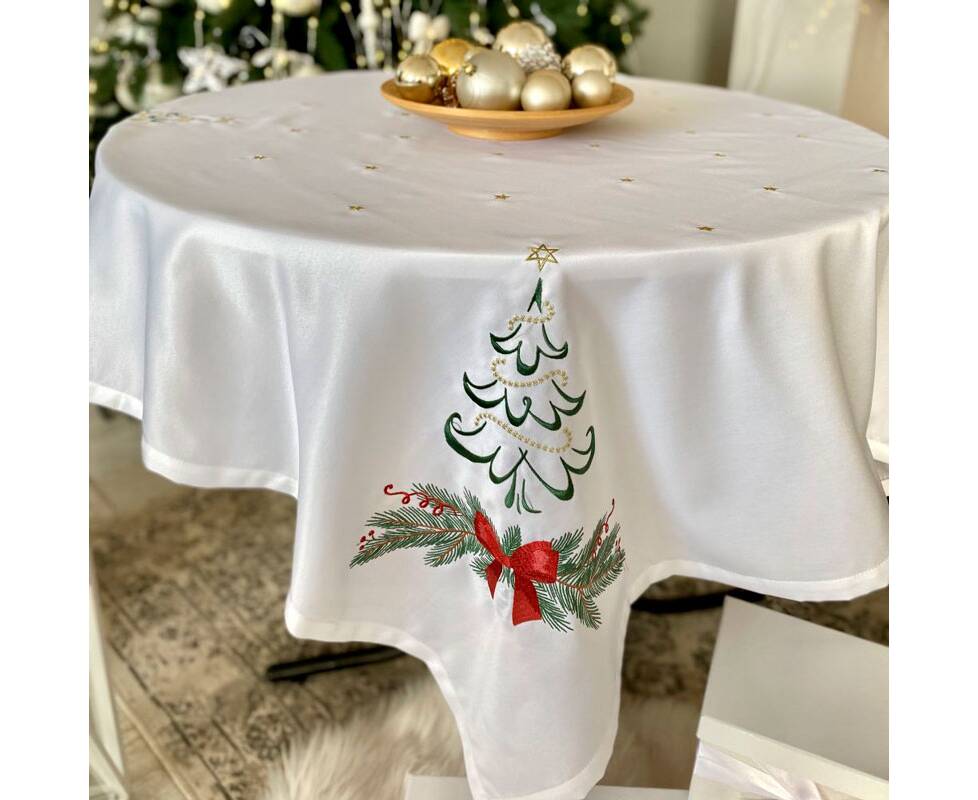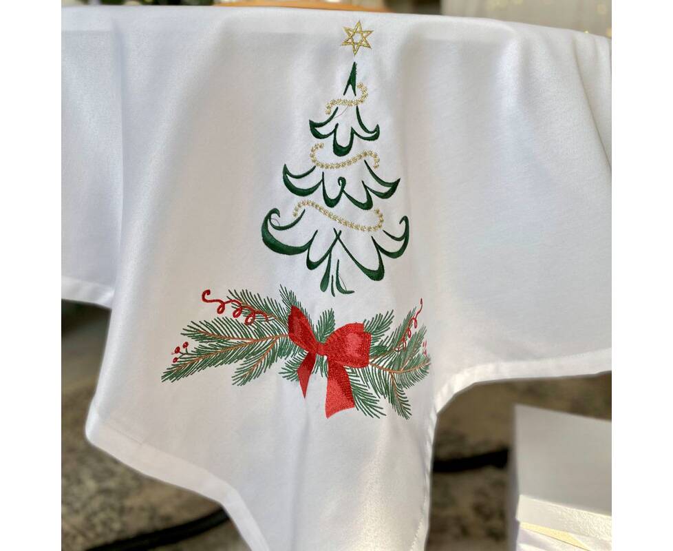Вишивана скатертина Ялинка з бантом 135x135 LiMaSo (SKVN012-135)